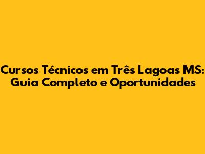 Cursos Técnicos Em Três Lagoas MS: Guia Completo E Oportunidades