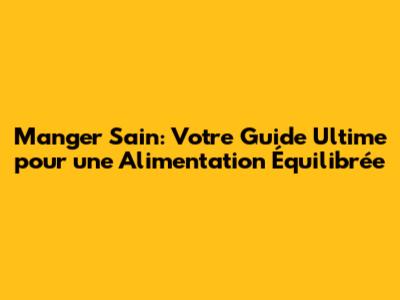 Manger Sain: Votre Guide Ultime Pour Une Alimentation Équilibrée